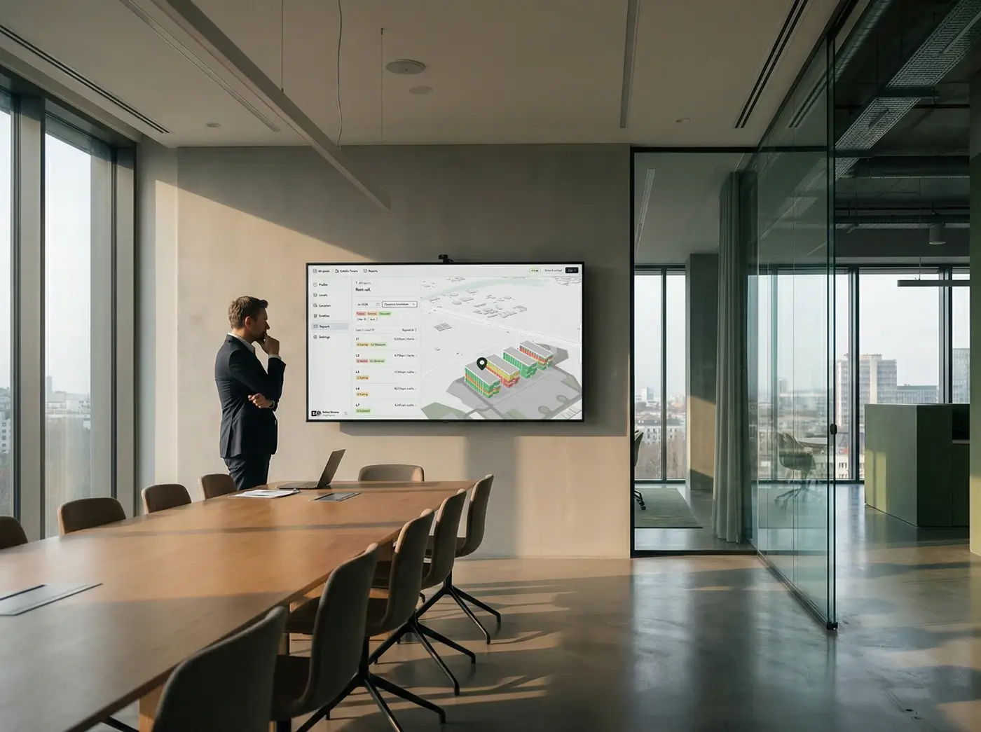 Strong on charts, spreadsheets and KPIs, weak on space. Buildings become rows, not places you can explore.